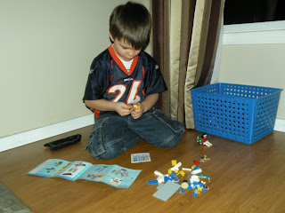 Ben looooooooooooooooooooooves Legos. He wanted so badly to build it then but it was late so we told him he could do it in the morning. But then, he couldn't sleep. He woke up a number of times to ask me how long until morning. At one point he asked to sleep with the direction booklets so that he could study them. So he did. In the morning, he didn't even come into my room...just got right to work!